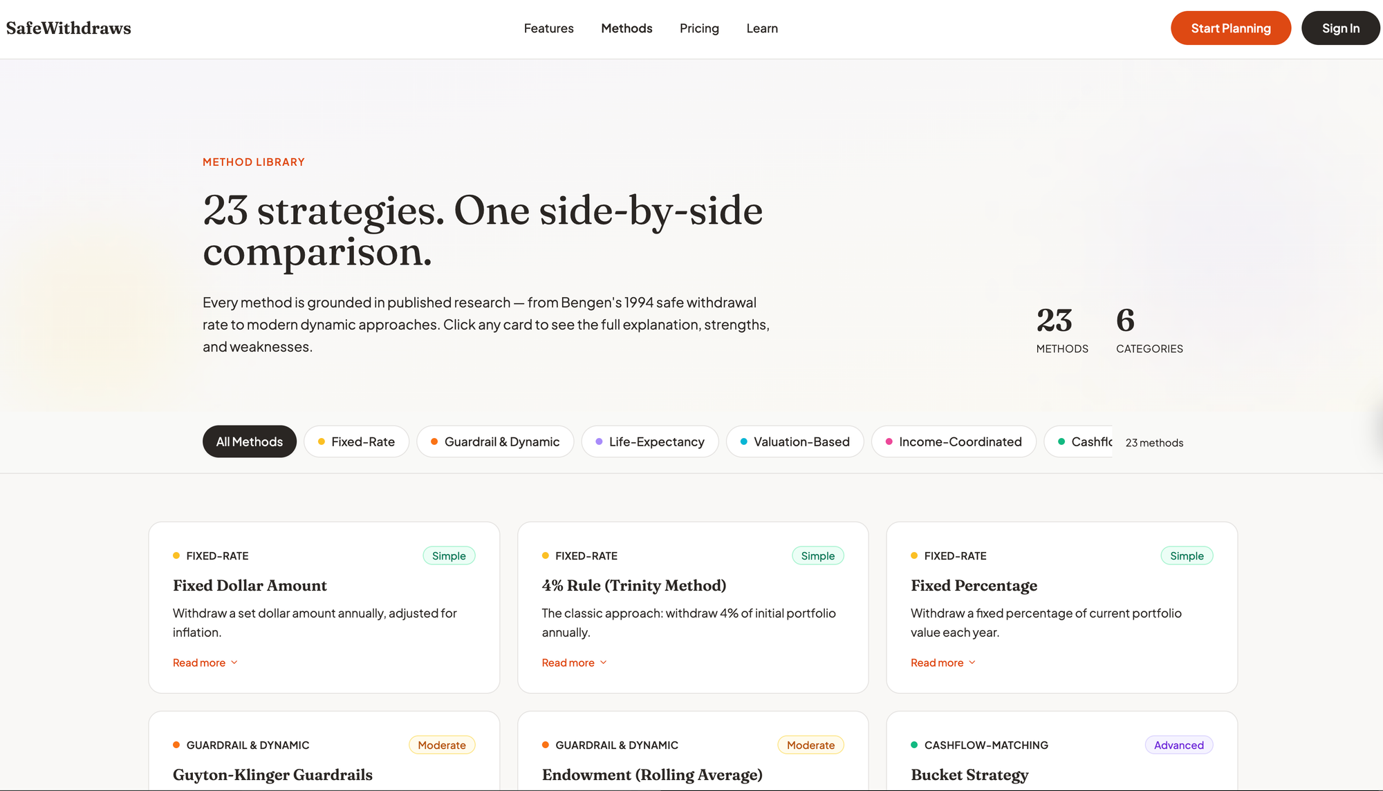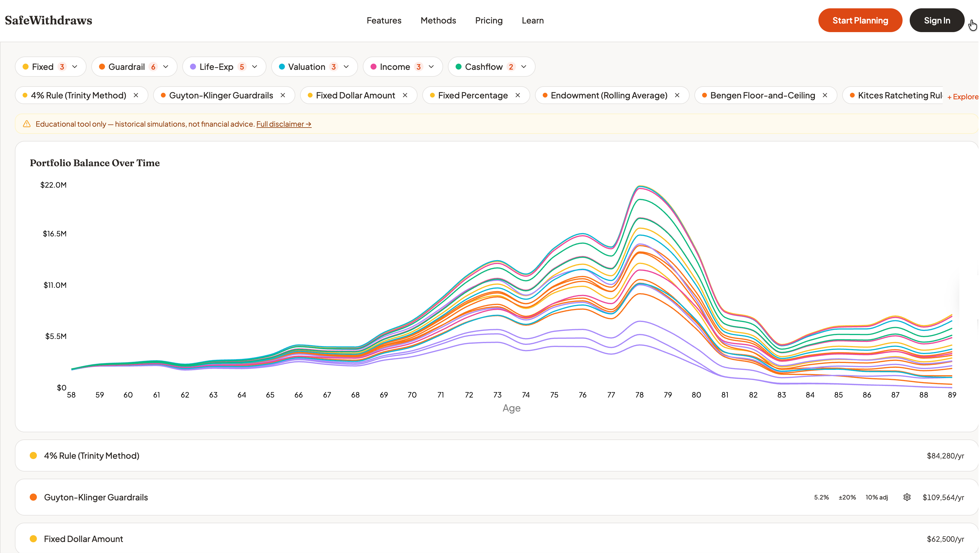 - Lets you compare sophisticated withdrawal strategies side-by-side.