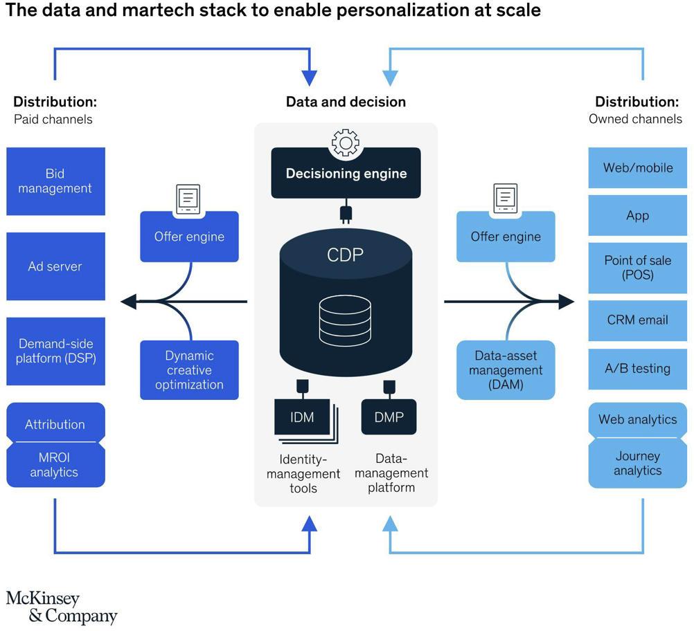 - The central hub is where all data and strategies are processed. This engine uses ML for optimizing models, ensuring the best results for personalization.